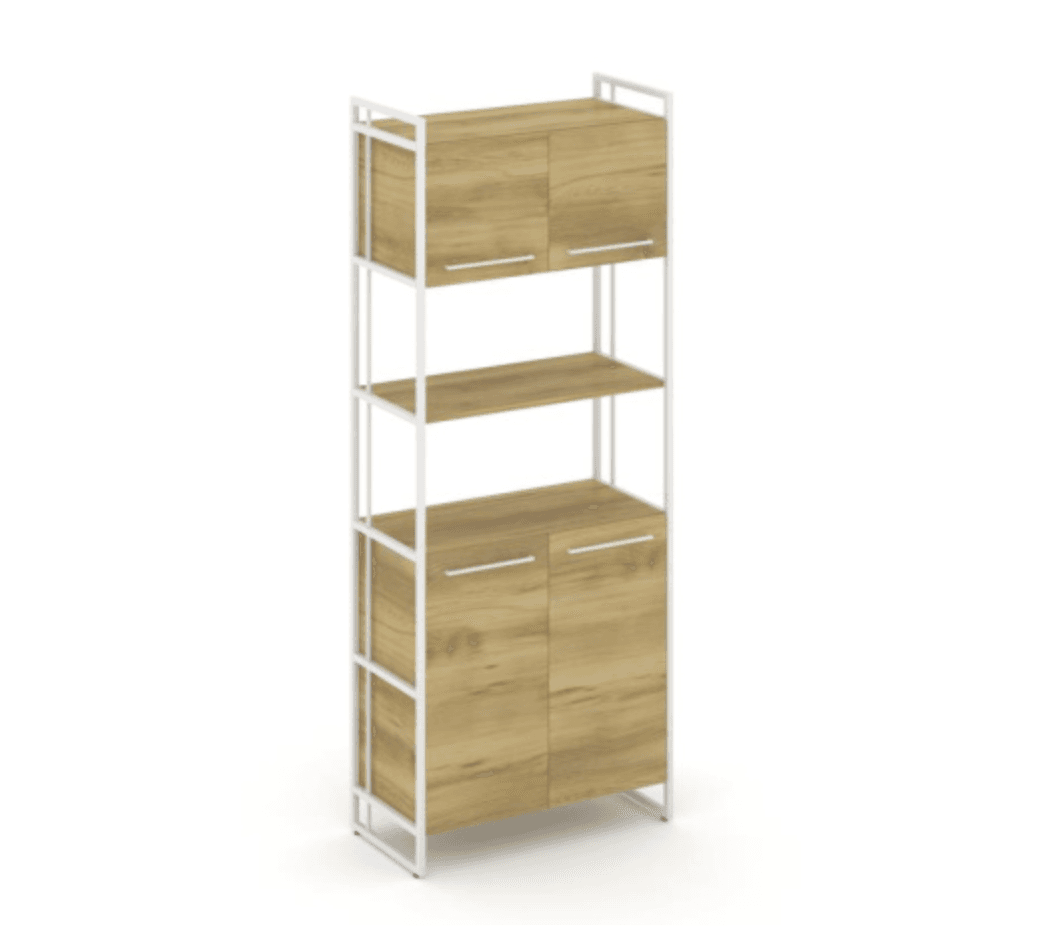 Шкаф высокий широкий 2 низкие/2 средние двери - металл белый, дуб винченцо