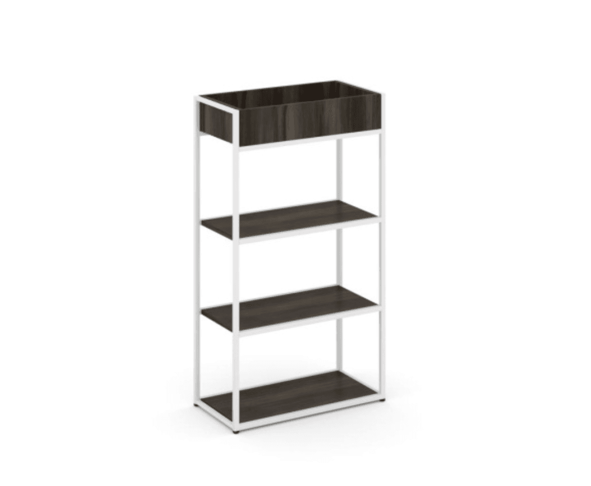 Стеллаж металлический высокий приставной 696 - металл белый, дуб мали