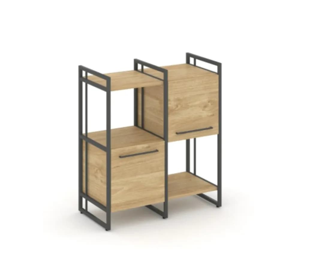 Шкаф комбинированый с нишами низкий - металл черный/антрацит тиквуд светлый