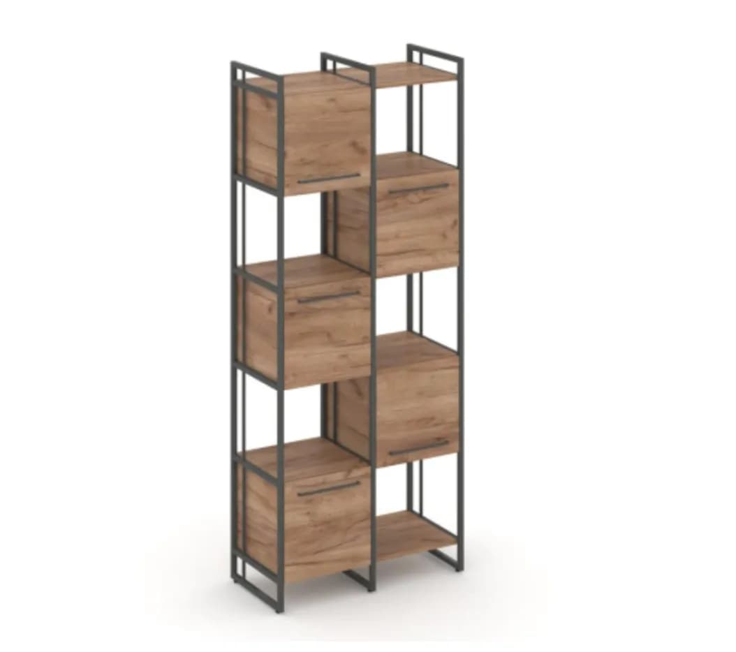Шкаф комбинированый с нишами высокий - металл черный/антрацит дуб табак