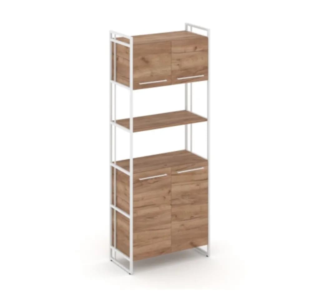 Шкаф высокий широкий 2 низкие/2 средние двери - металл белый дуб табак