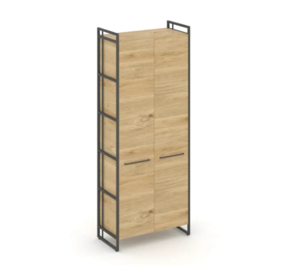 Шкаф высокий широкий закрытый - металл черный/антрацит тиквуд светлый