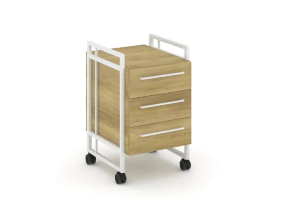Тумба мобильная, 3 ящика - металл белый дуб винченцо