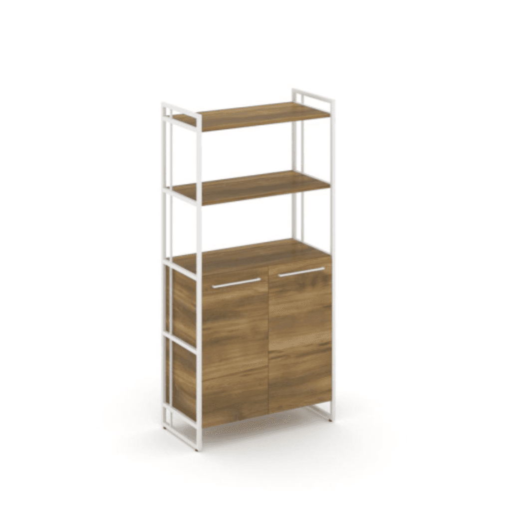 Шкаф высокий широкий 2 низкие двери - металл белый, сандал янтарный