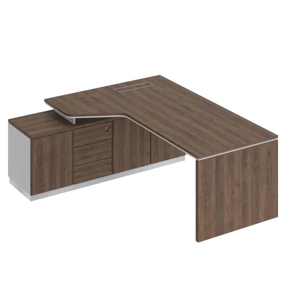 Стол на опорной тумбе левый эргономичный (опора ДСП) дуб тёмный/белый/дуб тёмный