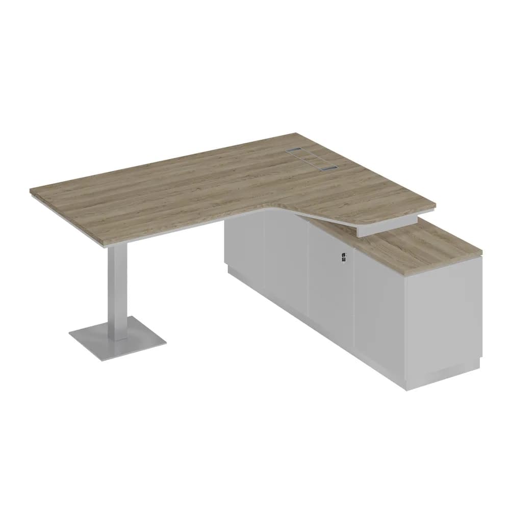 Стол руководителя эргономичный на опорной тумбе правый дуб светлый/белый/белый