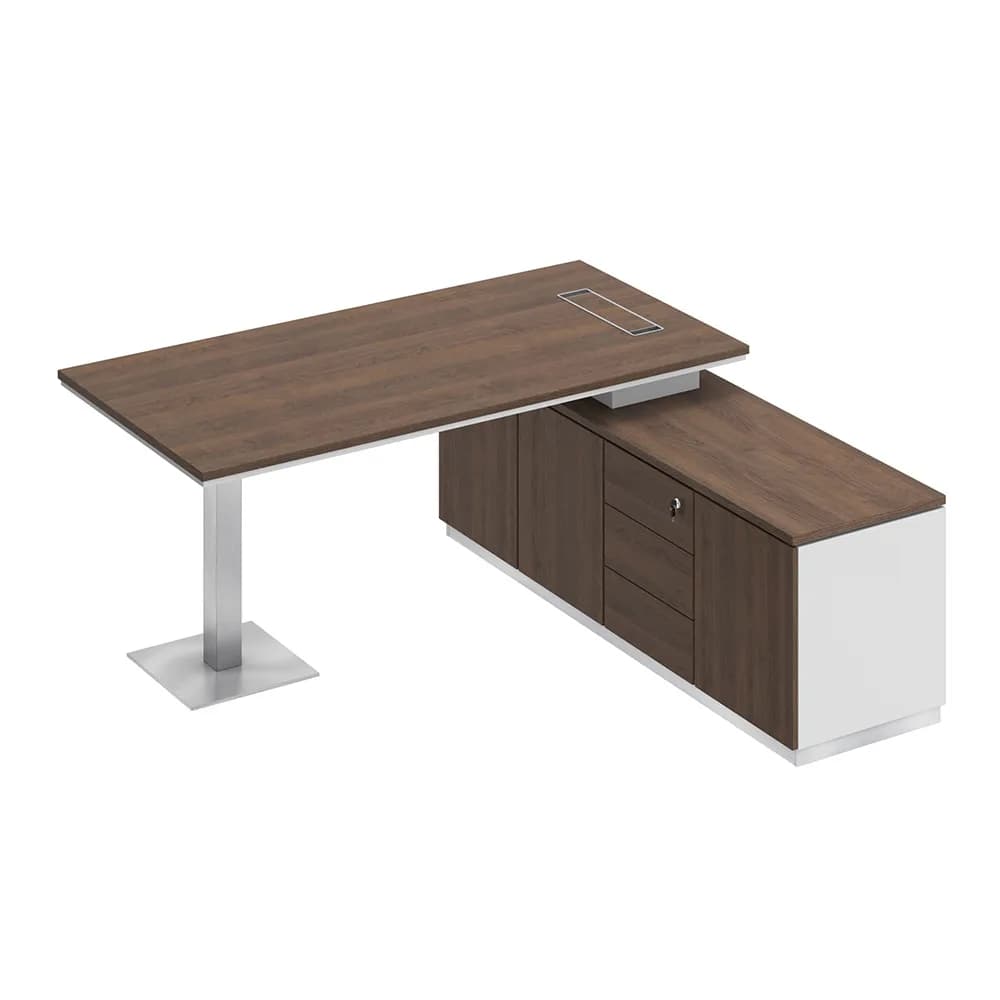 Стол руководителя на опорной тумбе 180 дуб тёмный/белый/дуб тёмный
