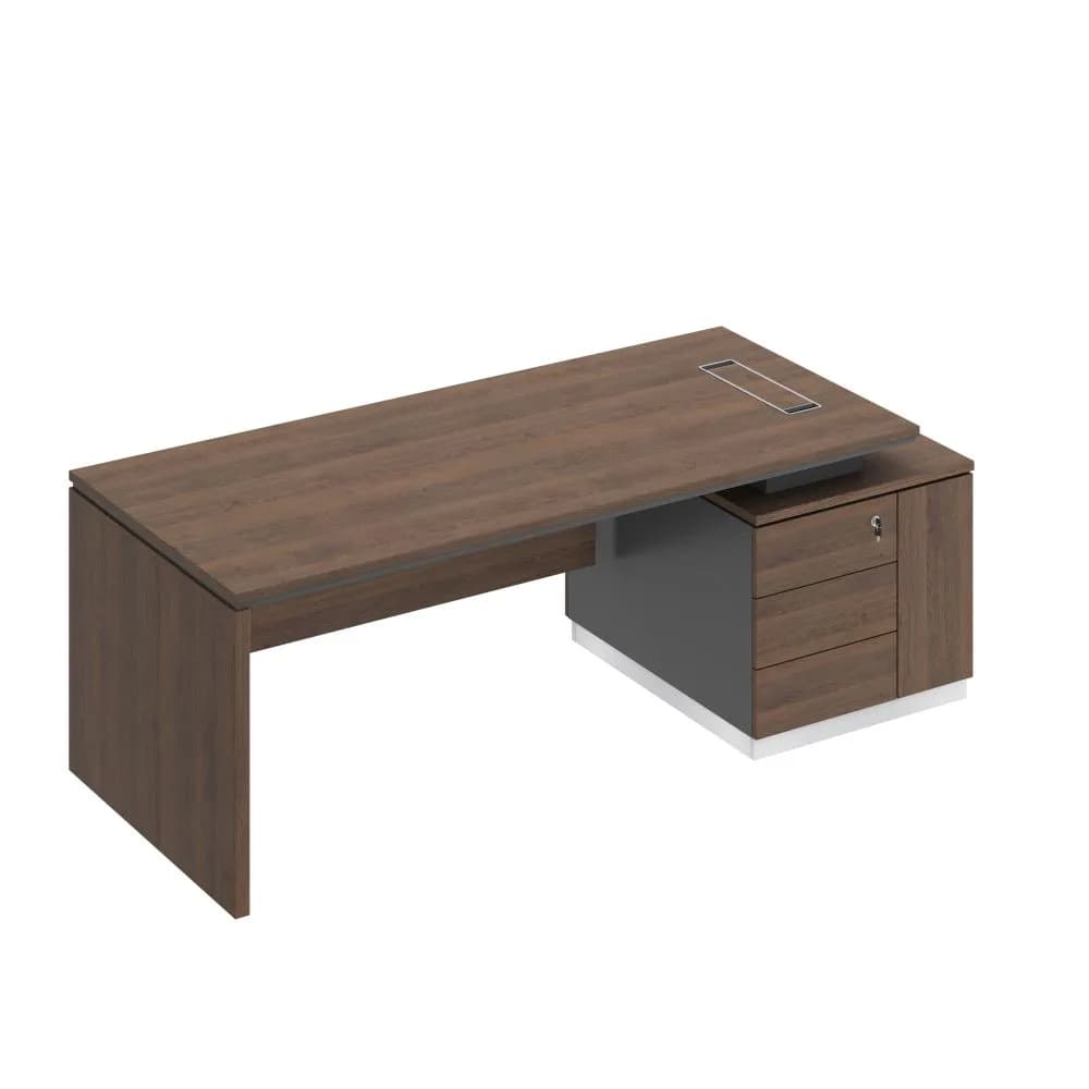 Стол руководителя (опора ДСП) на опорной тумбе дуб тёмный/антрацит/дуб тёмный