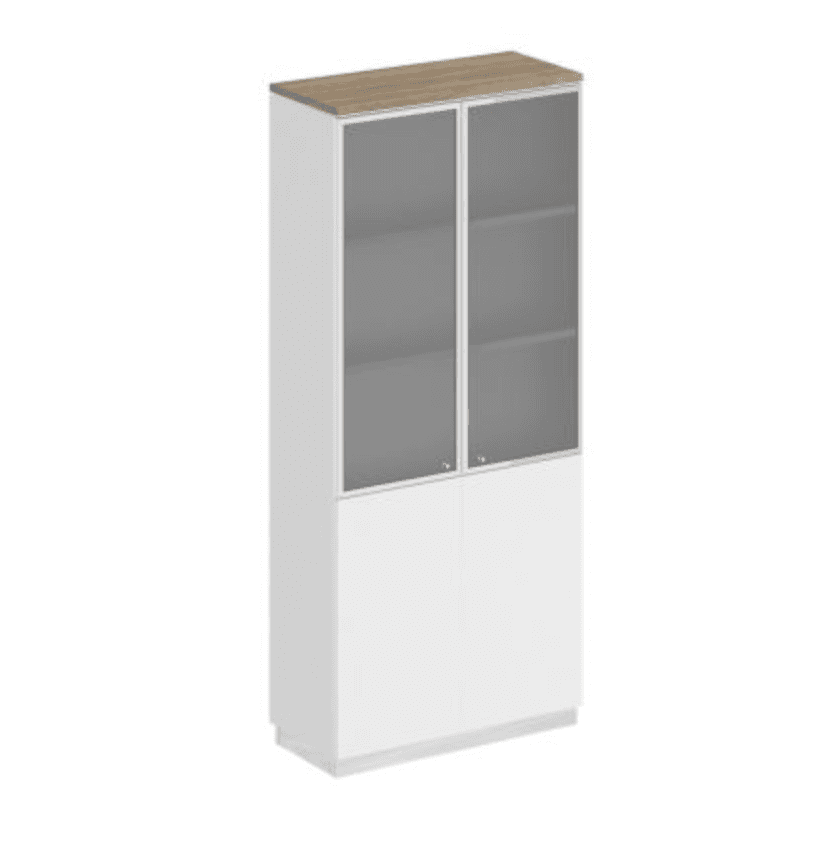 Шкаф для документов со стеклянными дверьми, дуб светлый/белый/белый