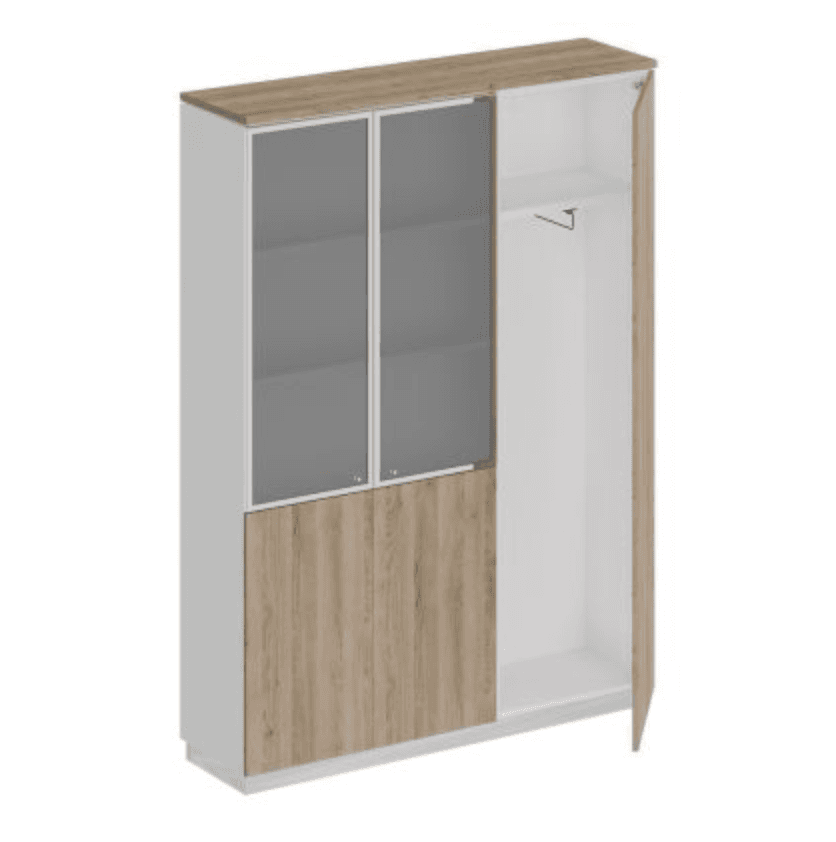 Шкаф комбинированный, дуб светлый/белый/дуб светлый