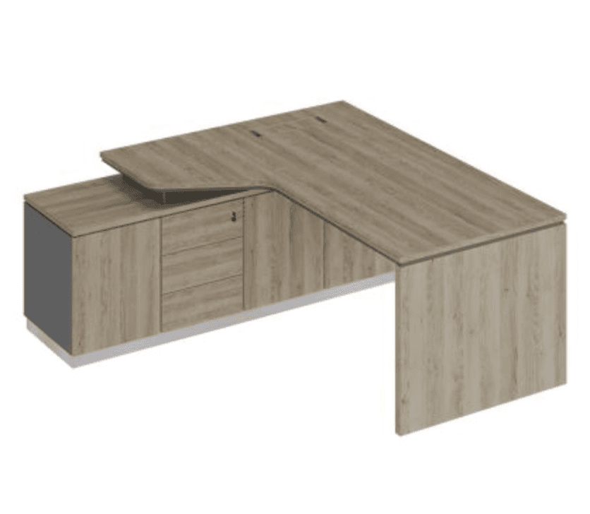 Стол на опорной тумбе левый эргономичный (опора ДСП), дуб светлый/антрацит/дуб светлый