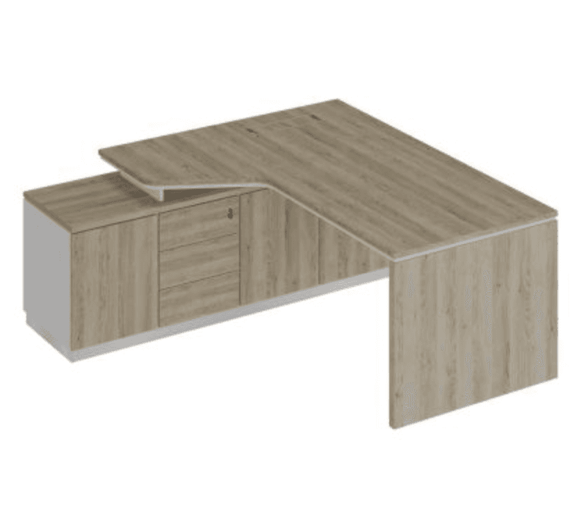 Стол на опорной тумбе левый эргономичный (опора ДСП), дуб светлый/белый/дуб светлый