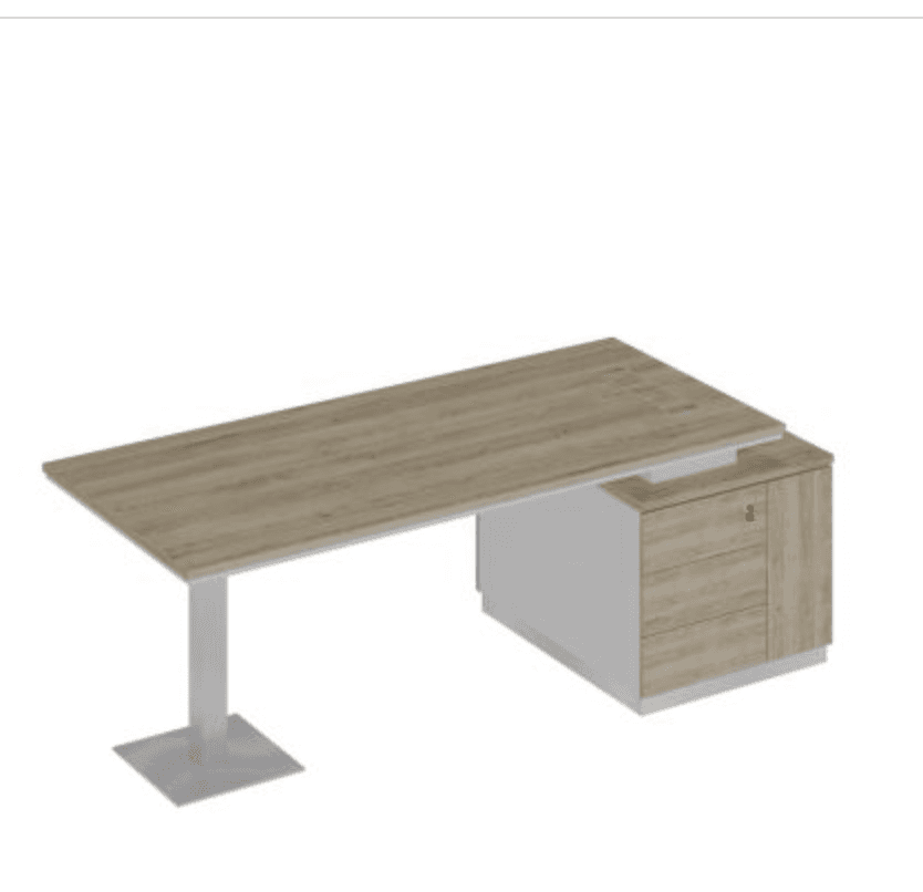 Стол на опорной тумбе, дуб светлый/белый/дуб светлый