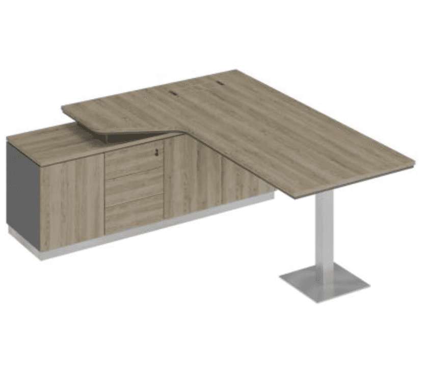 Стол руководителя эргономичный на опорной тумбе левый, дуб светлый/антрацит/дуб светлый