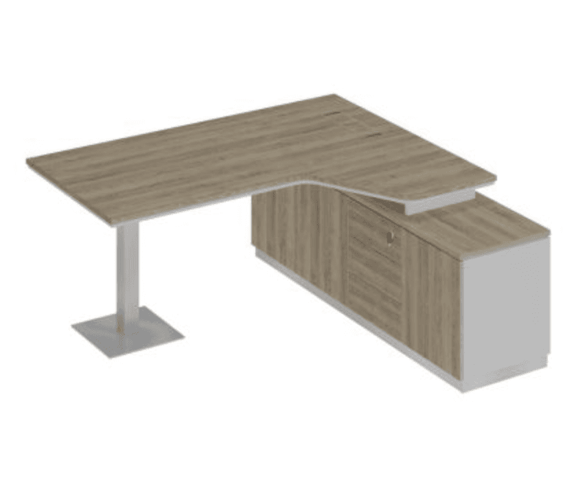 Стол руководителя эргономичный на опорной тумбе правый, дуб светлый/белый/дуб светлый