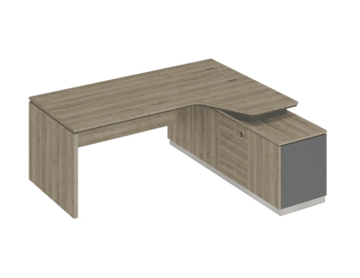 Стол руководителя эргономичный (опора ДСП) на опорной тумбе правый, дуб светлый/антрацит/дуб светлый