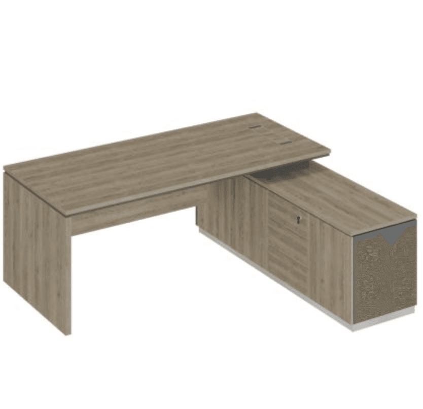 Стол руководителя (опора ДСП) на опорной тумбе, дуб светлый/антрацит/дуб светлый