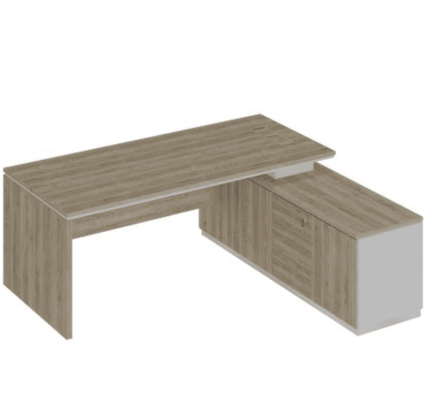 Стол руководителя (опора ДСП) на опорной тумбе, дуб светлый/белый/дуб светлый