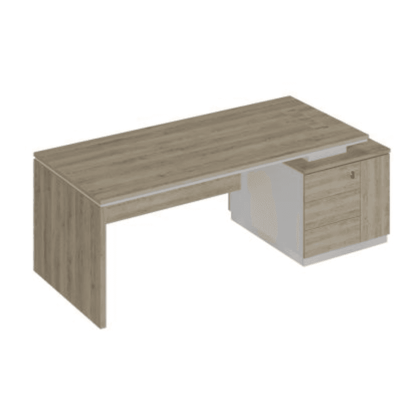 Стол руководителя (опора ДСП) на опорной тумбе, дуб светлый/белый/дуб светлый