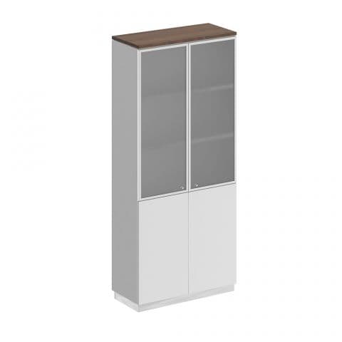 Шкаф для документов со стеклянными дверьми, дуб тёмный/белый/белый