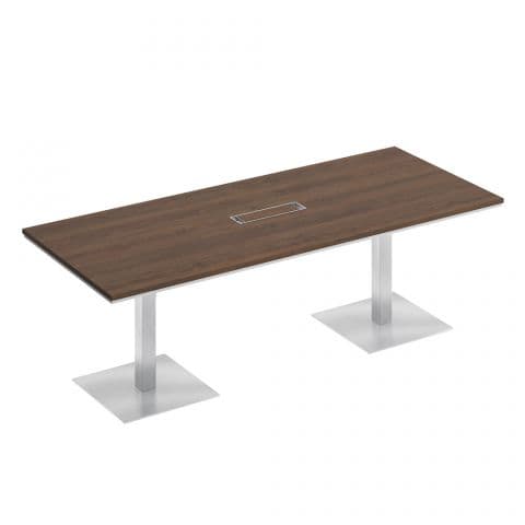 Стол для переговоров на квадратных опорах-колоннах 220, дуб тёмный/белый