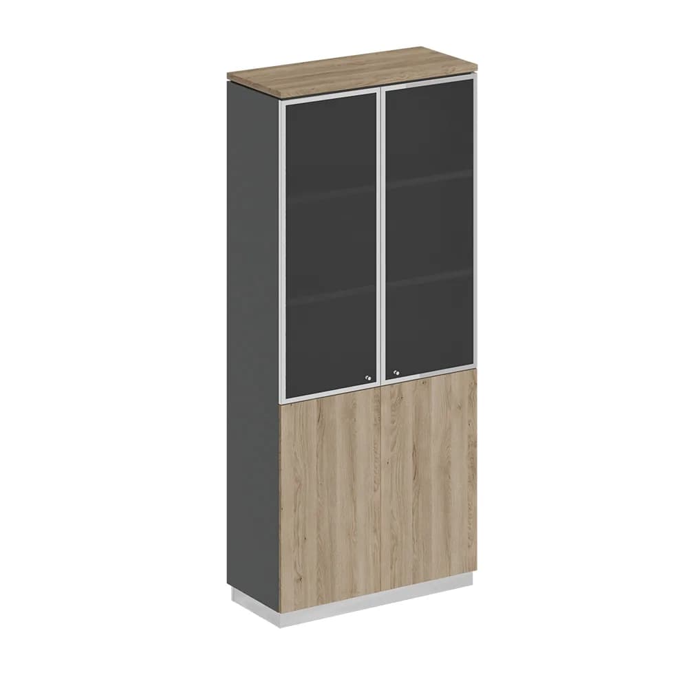 Шкаф для документов со стеклянными дверьми дуб светлый/антрацит/дуб светлый