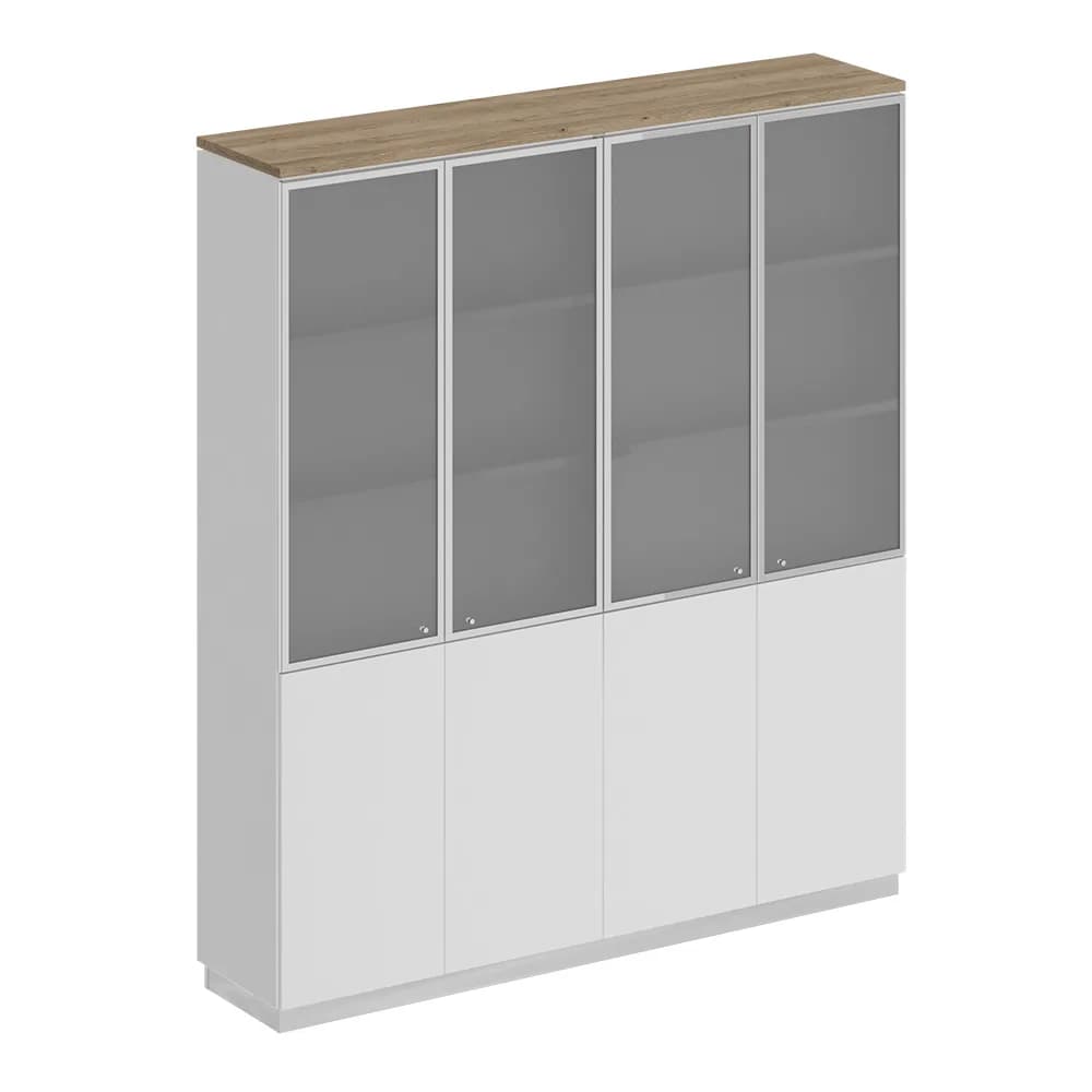 Шкаф для документов со стеклянными дверьми дуб светлый/белый/белый