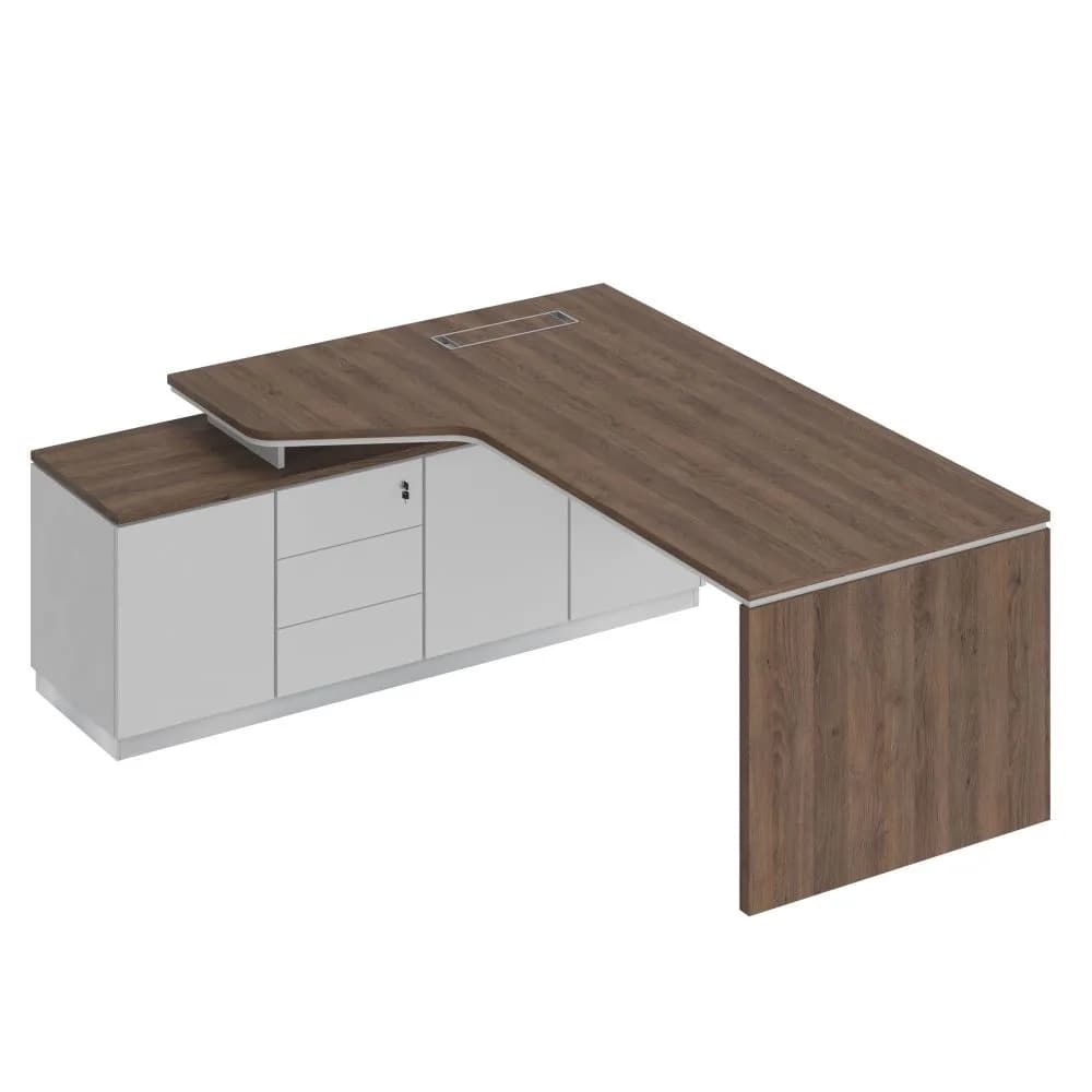 Стол на опорной тумбе левый эргономичный (опора ДСП) дуб тёмный/белый/белый