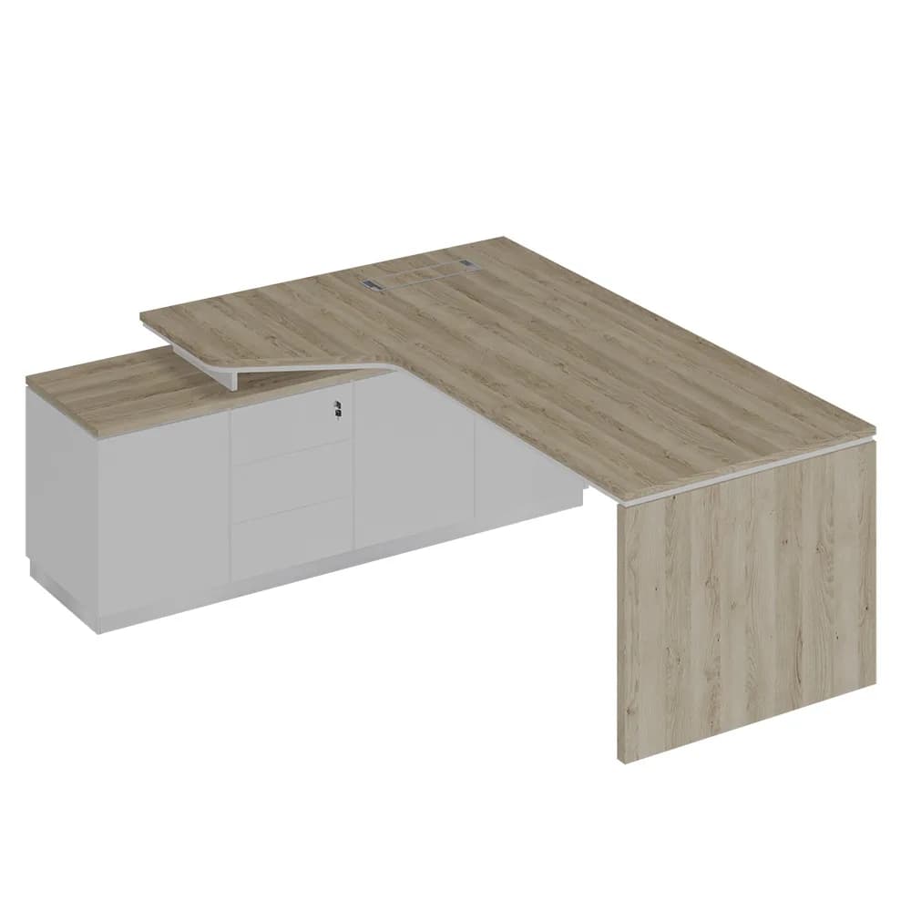 Стол на опорной тумбе левый эргономичный (опора ДСП) дуб светлый/белый/белый