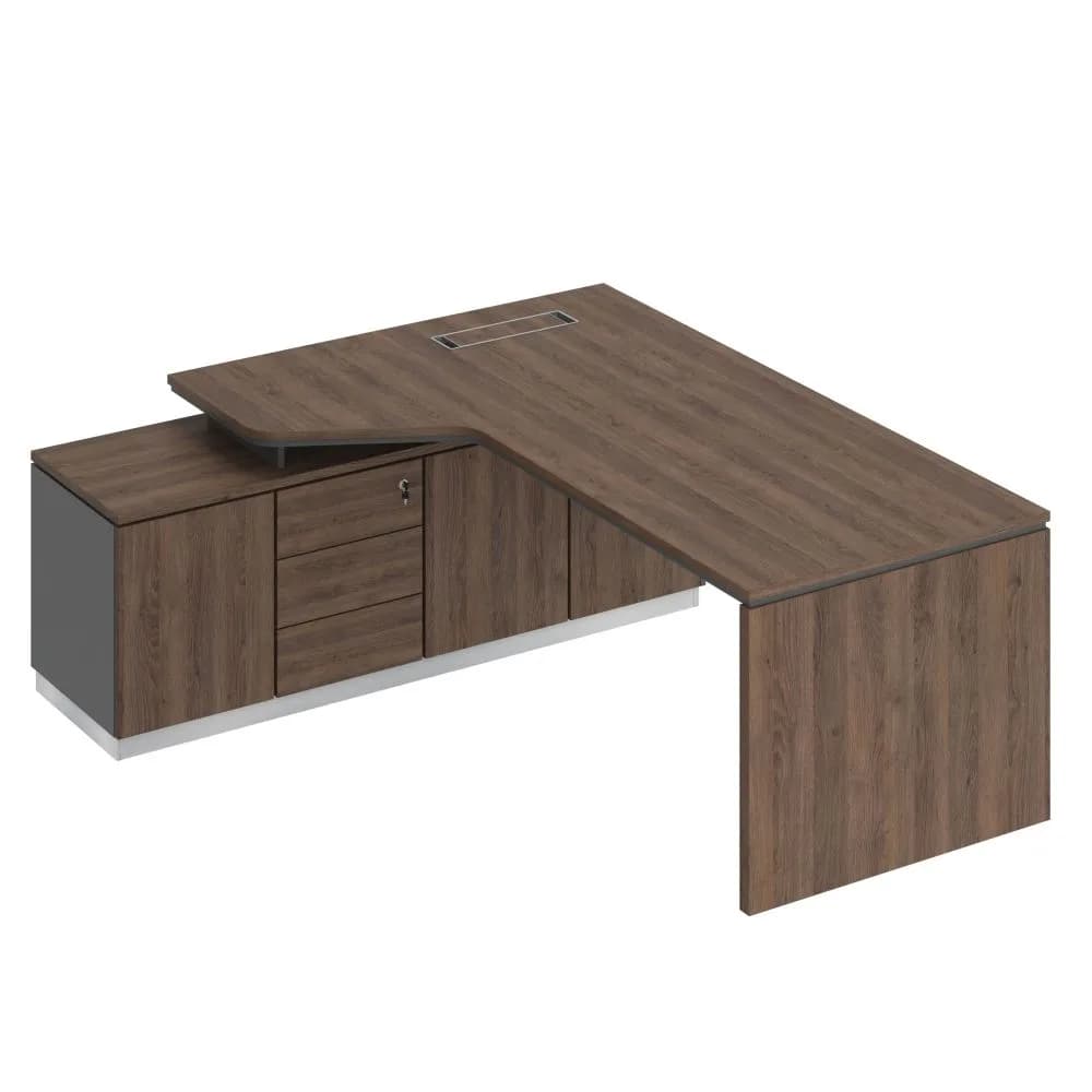 Стол на опорной тумбе левый эргономичный (опора ДСП) дуб тёмный/антрацит/дуб тёмный
