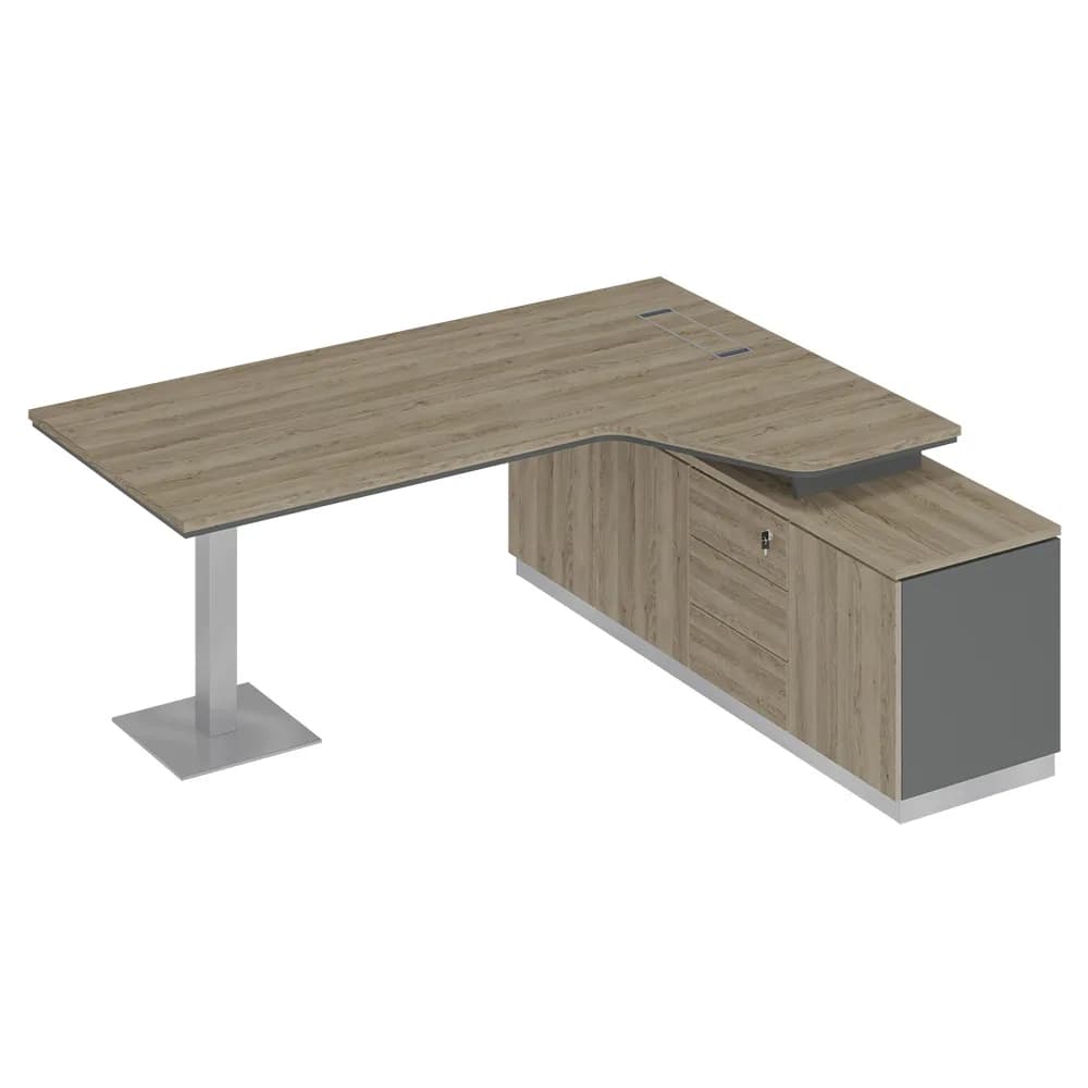 Стол руководителя эргономичный на опорной тумбе правый дуб светлый/антрацит/дуб светлый