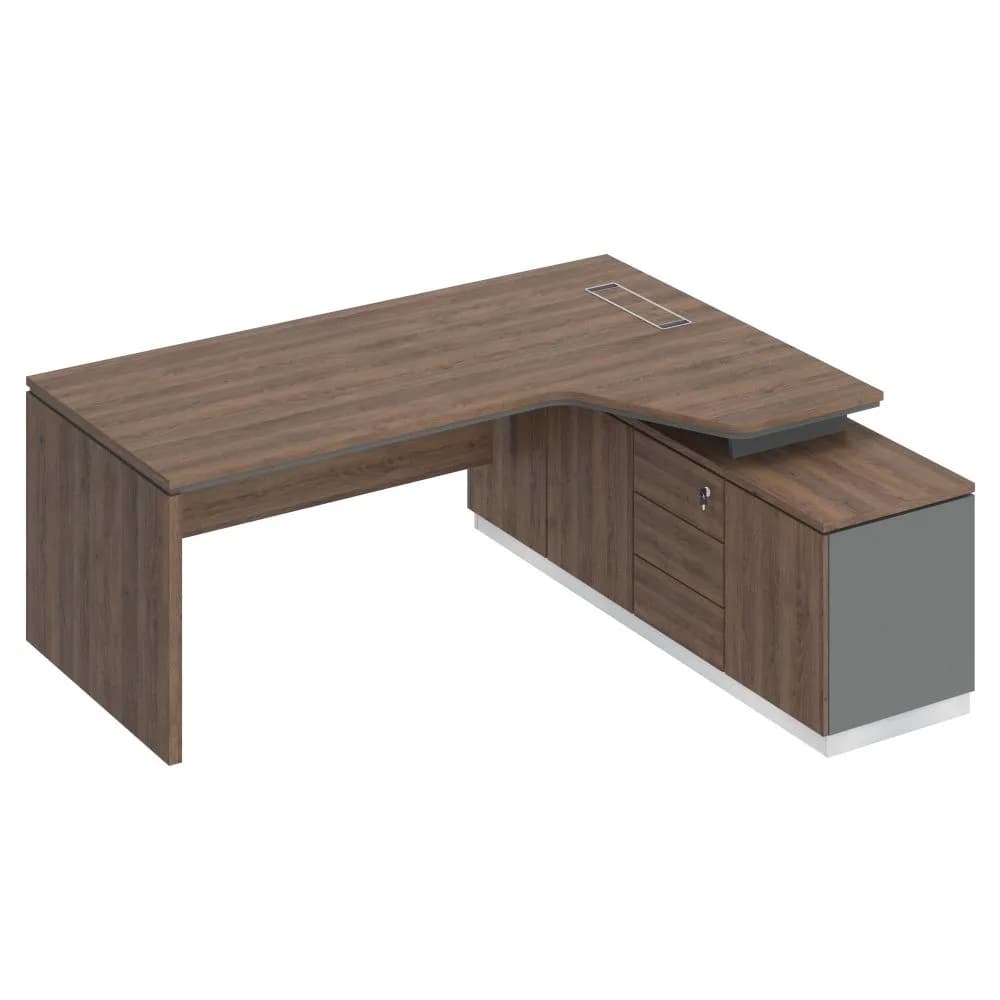 Стол руководителя эргономичный (опора ДСП) на опорной тумбе правый дуб тёмный/антрацит/дуб тёмный
