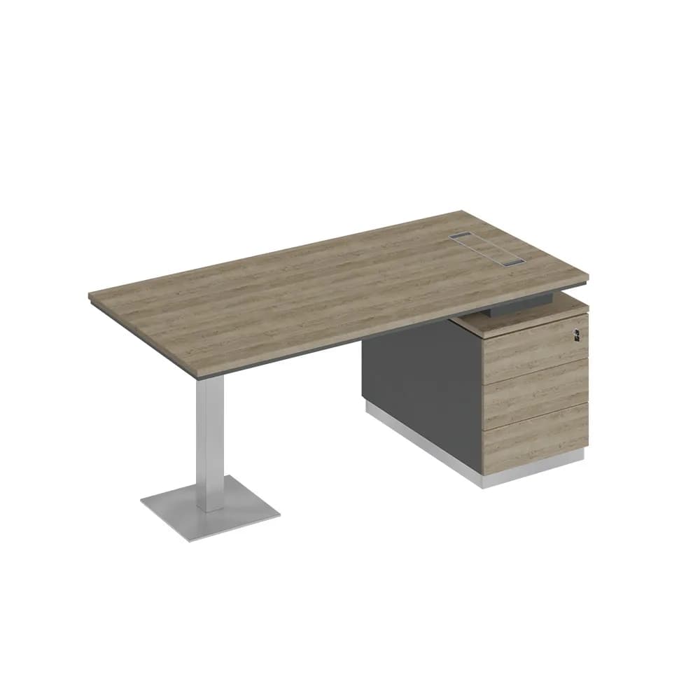 Стол руководителя на опорной тумбе 180 дуб светлый/антрацит/дуб светлый
