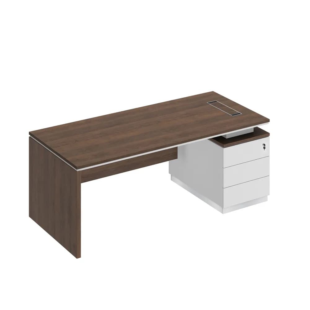 Стол руководителя (опора ДСП) на опорной тумбе 200 дуб тёмный/белый/белый