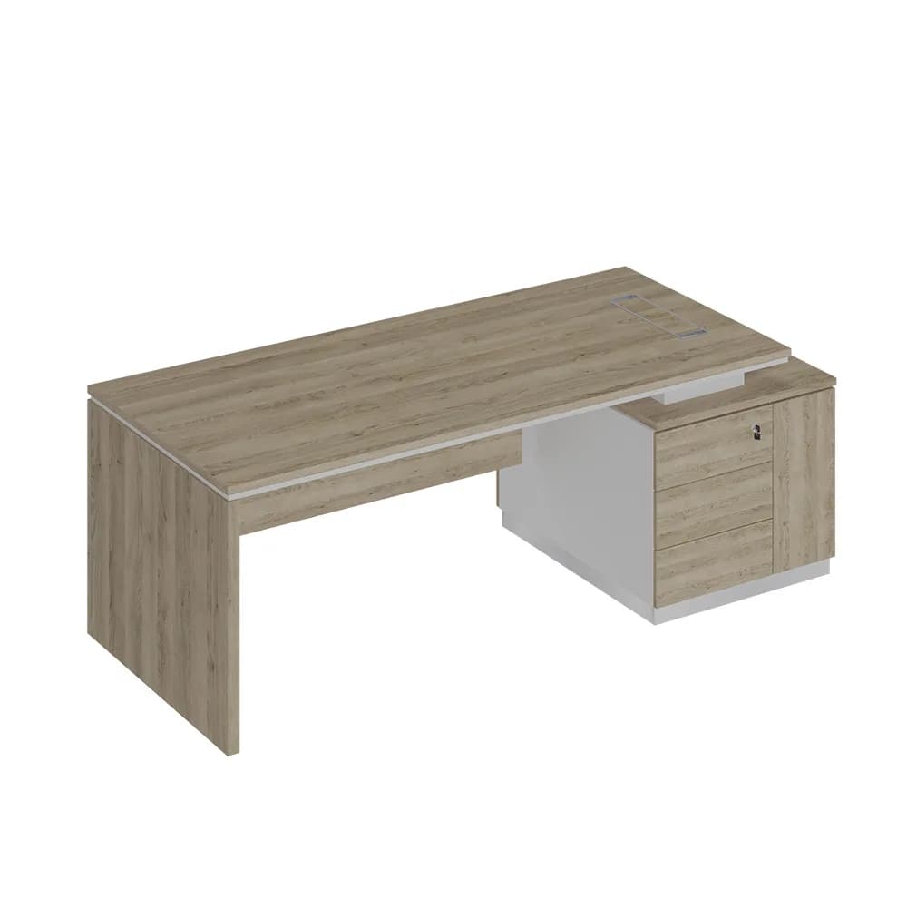 Стол руководителя (опора ДСП) на опорной тумбе дуб светлый/белый/дуб светлый