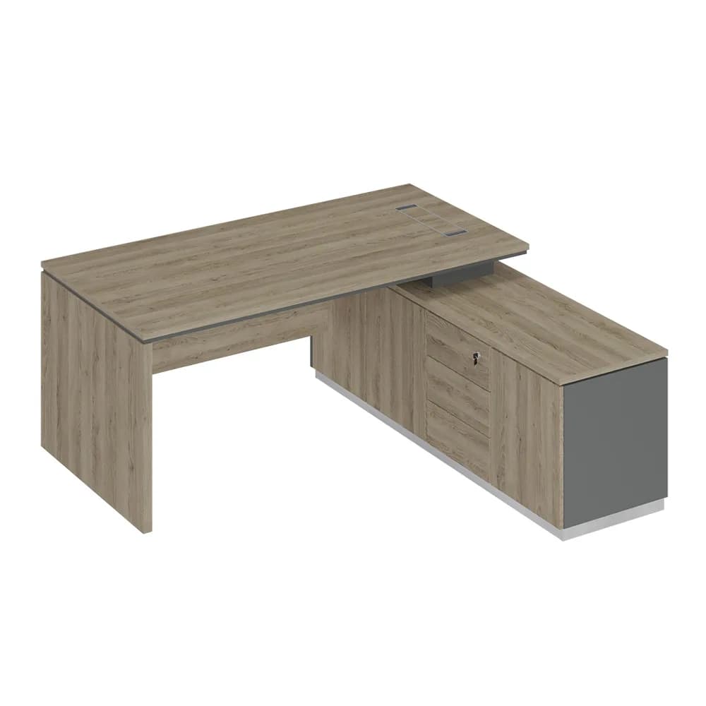 Стол руководителя (опора ДСП) на опорной тумбе дуб светлый/антрацит/дуб светлый