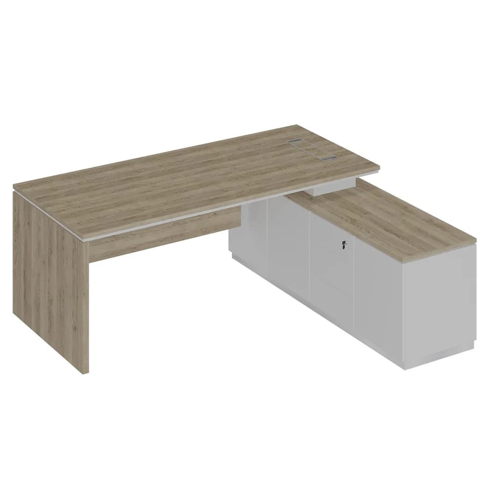 Стол руководителя (опора ДСП) на опорной тумбе дуб светлый/белый/белый