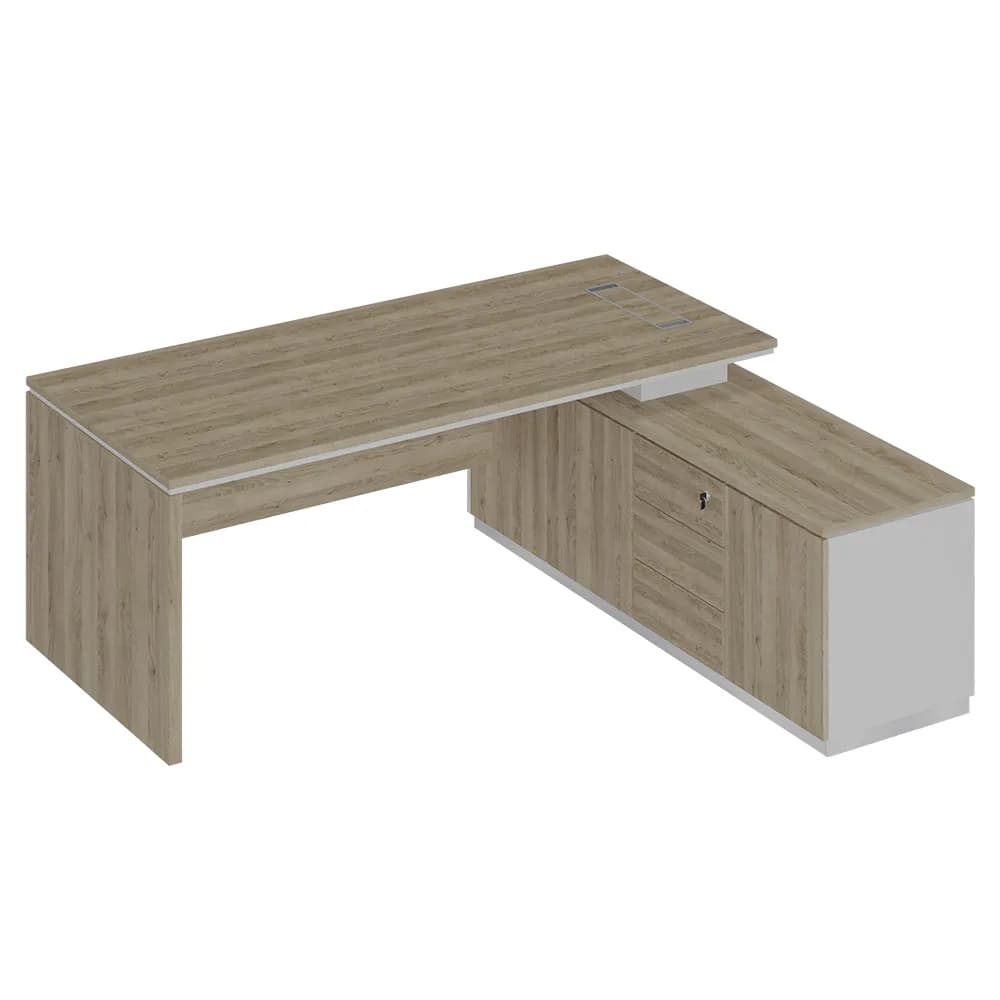 Стол руководителя (опора ДСП) на опорной тумбе дуб светлый/белый/дуб светлый