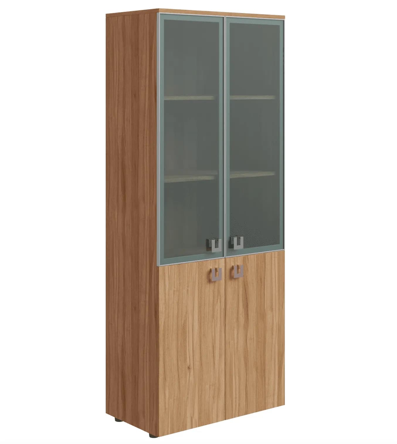 Шкаф для бумаг со стеклом в алюминиевой раме орех селект