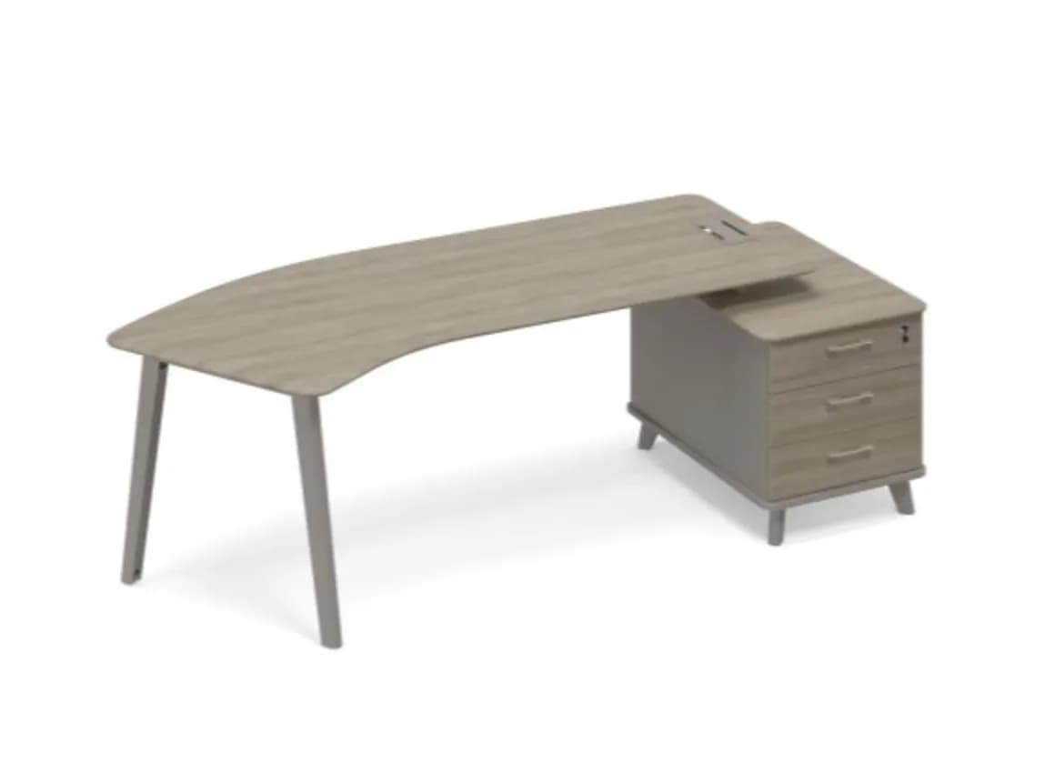 Стол эргономичный на опорной тумбе малой правый (тип 5) мокко премиум/вяз либерти