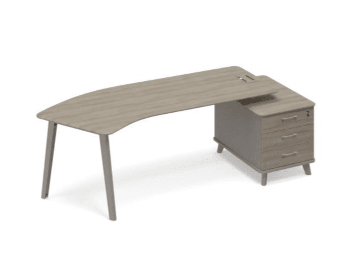 Стол эргономичный на опорной тумбе малой правый (тип 5), мокко премиум/вяз либерти