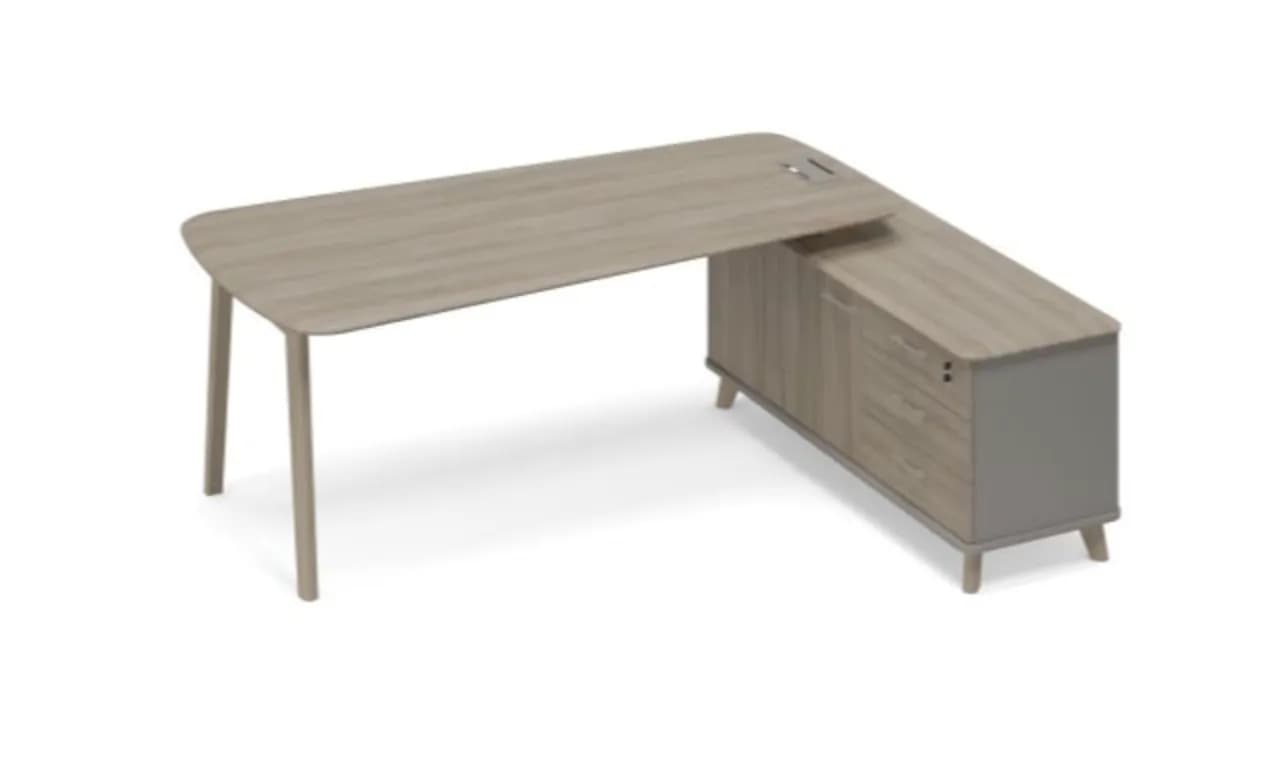Стол на опорной тумбе правый (тип 3) WOOD мокко премиум/вяз либерти