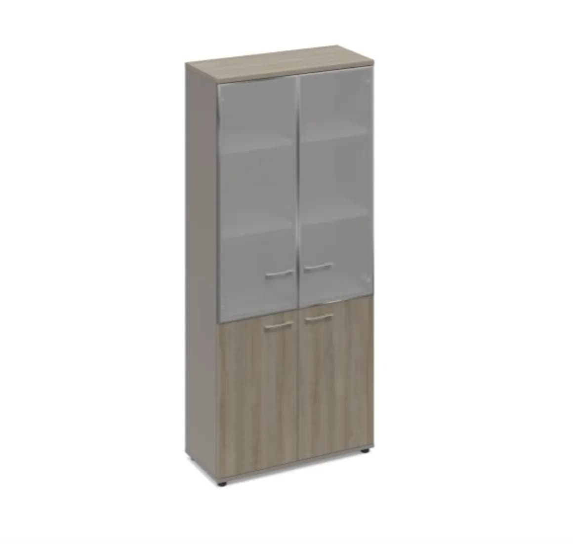 Шкаф со стеклянными дверьми в алюминиевой рамке (топ МДФ) мокко премиум/вяз либерти