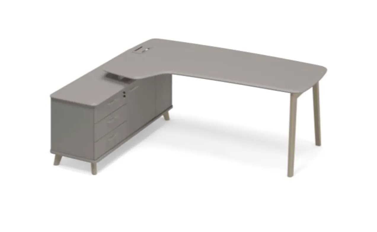 Стол эргономичный на опорной тумбе левый (тип 4) WOOD мокко премиум