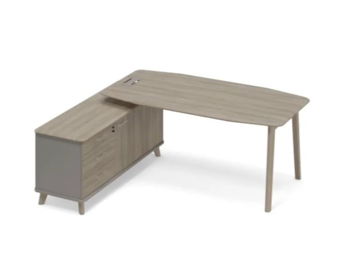 Стол руководителя левый (тип 2) WOOD на опорной тумбе мокко премиум/вяз либерти