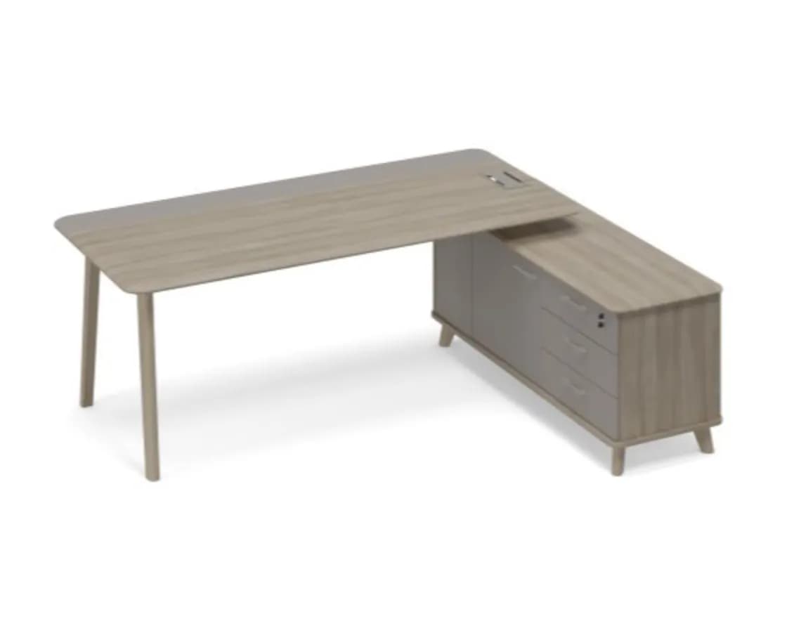 Стол руководителя с опорной тумбой правый (тип 1) WOOD вяз либерти/мокко премиум