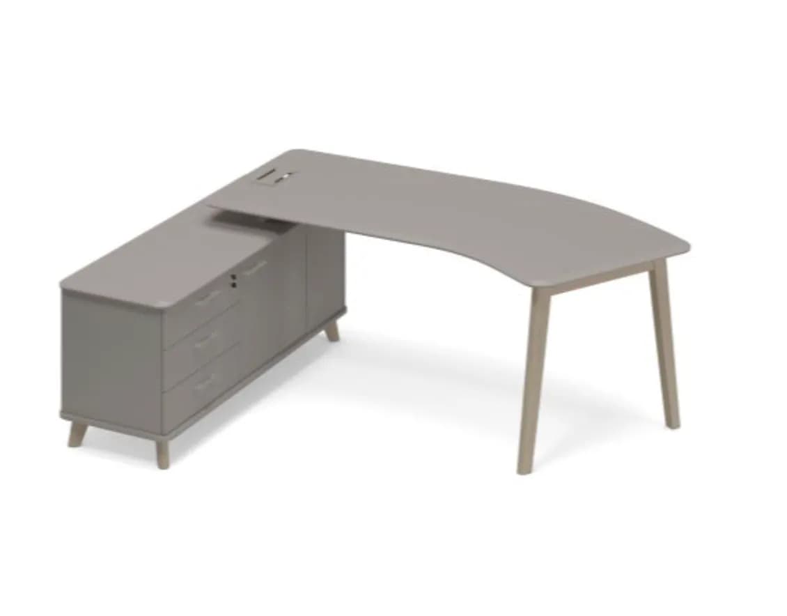 Стол руководителя эргономичный на опорной тумбе левый (тип 5) WOOD мокко премиум