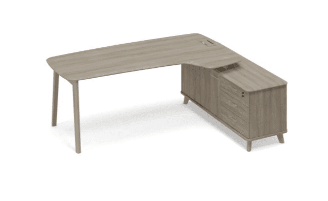 Стол эргономичный правый на опорной тумбе (тип 4) WOOD, вяз либерти