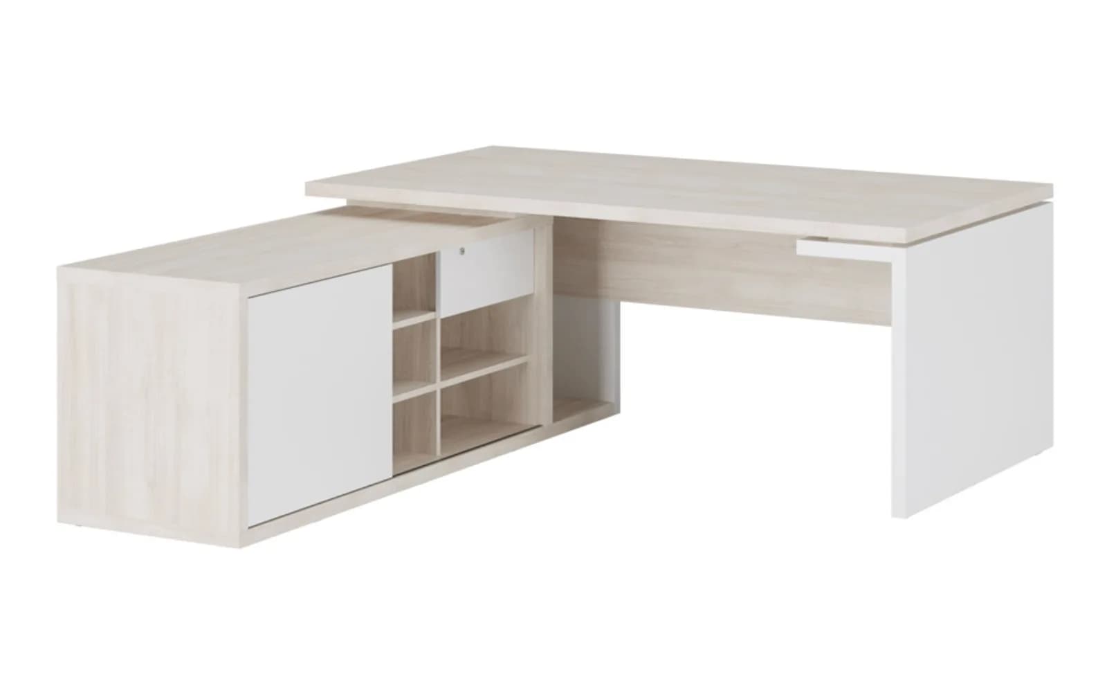 Стол письменный на опорной креденции левый 180 дуб шамони/белый