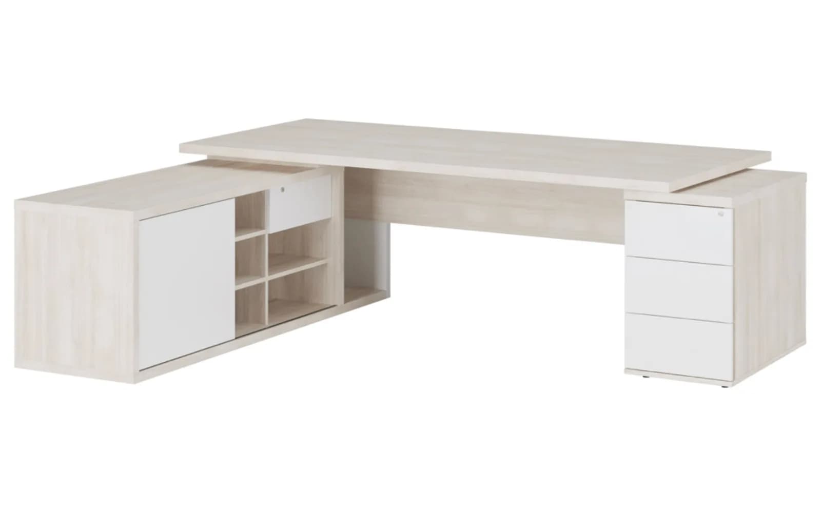 Стол рабочий на креденции и тумбе левый 220 дуб шамони/белый